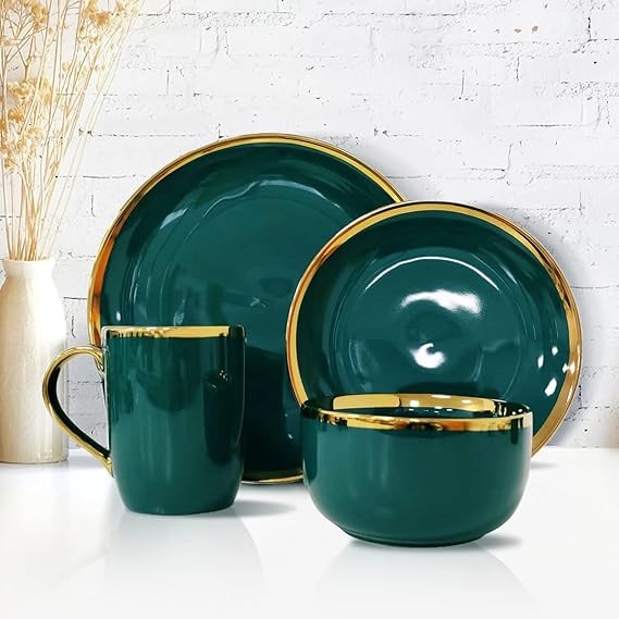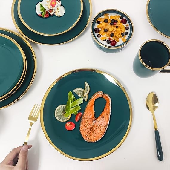 AXYWINBO® Dinnerware Sets,24-Piece Plates and Bowls Sets for 4,Green Modern Porcelain Dish Set Contain Dinnerware & Accessories for Wedding and Housewarming Gifts