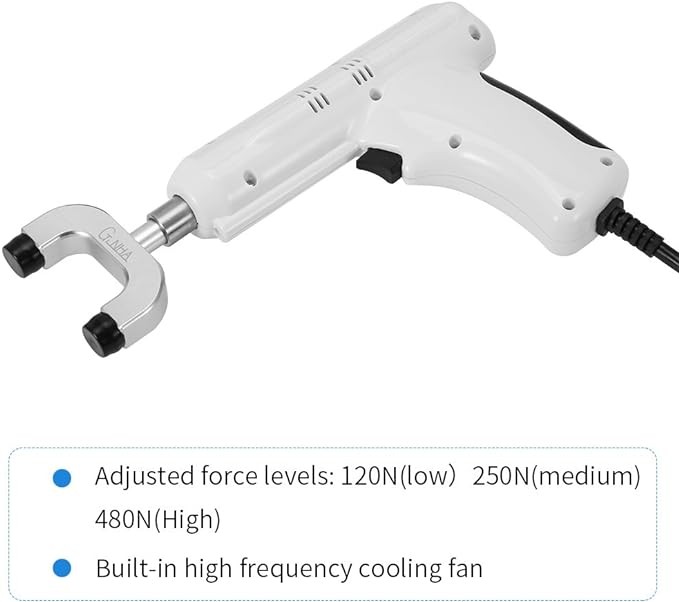 • 3 Levels Force Can Be Adjusted: 75N(low) , 180N(medium), 300N(High), meeting your various needs. Can improve nerve cell and the normal function of an organ resulting in rapid recovery the body function. Mechanic , easy Treatment, time saving, energy saving, which is a good replacement to the human forces.