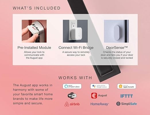 Includes August Connect Wi-Fi Bridge for use with August Doorsense and August doorbell.