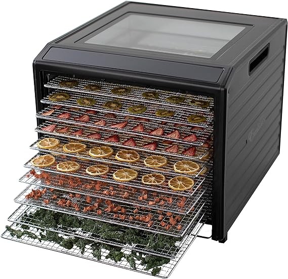• LARGE CAPACITY: With 16 sq. ft. of drying space and 10 stainless steel-plated trays, this dehydrator provides ample room to dehydrate large batches of food items simultaneously, saving you time and effort.