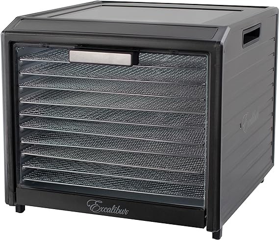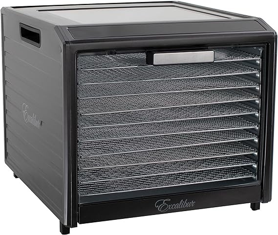 Excalibur Electric Food Dehydrator Performance Series 10-Tray with Adjustable Temperature Control Includes Stainless Steel Drying Trays Glass Door Top View Window and LED Display Progress Bar, Black