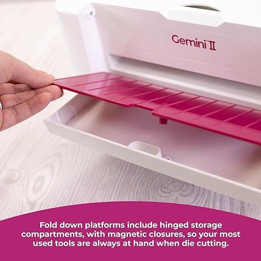 • Foldaway platform with built-in storage compartment for tools, metal dies, and media.