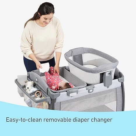 Removable diaper changer is easy to clean with wipe-clean fabrics