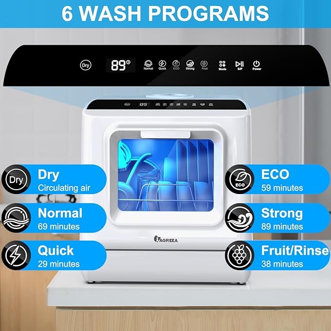 IAGREEA Portable Countertop Dishwasher, No Hookup Needed, Compact Dishwasher With 5-Liter Built-in Water Tank,5 Programs, 360° Dual Spray