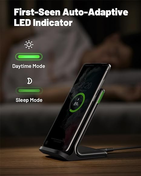 INIU wireless charger, 15W fast wireless charging station with sleep-friendly adaptive light, compatible with iPhone 15 14 13 12 Pro XR XS 8 Plus Samsung Galaxy S23 S22 S21 S20 Note 20 10 Google and m