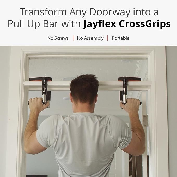 • PORTABLE DOORWAY GYM: Work from home fitness has never been easier with Jayflex CrossGrips - portable pull up bar handles. Transform any doorway into an at-home pull up bar with these door frame pull-up bar.