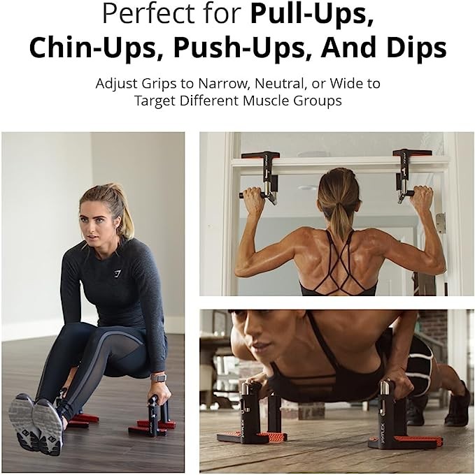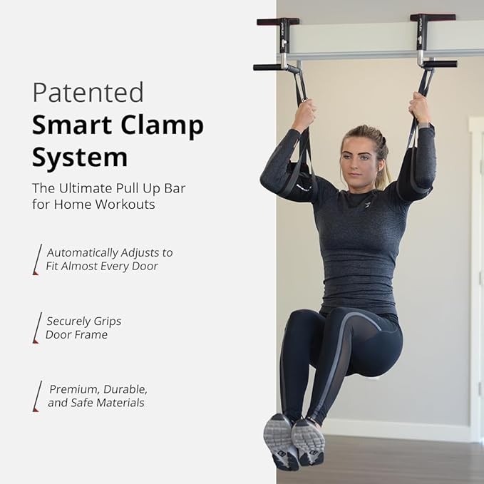 • FULL UPPER BODY WORKOUT: Get a complete upper body workout with this pull up bar for doorway - adjust to narrow, wide, and neutral grips for pull-ups, chin-ups, push-ups, and dips. Strengthen with one of the best strength training pull ups bars available.
