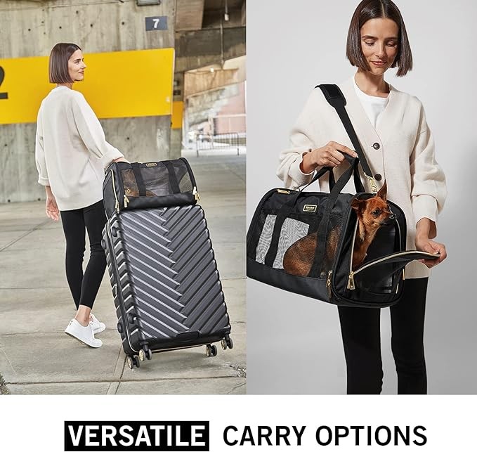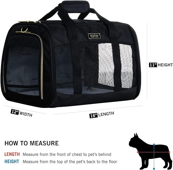 Kenneth Cole Reaction Collapsible Travel Pet Carrier Soft Multi-Entry Folding Portable Kennel Crate for Puppy Dog, Cat, and Rabbit Carrier Bag,Up to 16 Lbs,Black