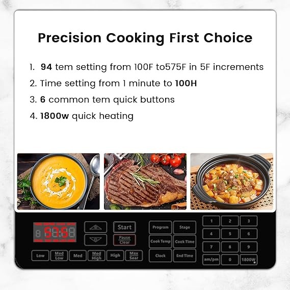 • PRECISE TEMPERATURE CONTROL – With 94 precise temperatures at your fingertips, you can keep delicate sauces warm at 100°F to grilling a juicy steak with serious grill marks at 575°F.