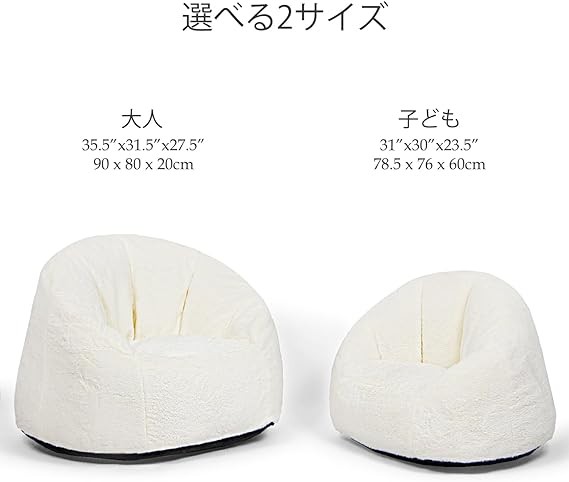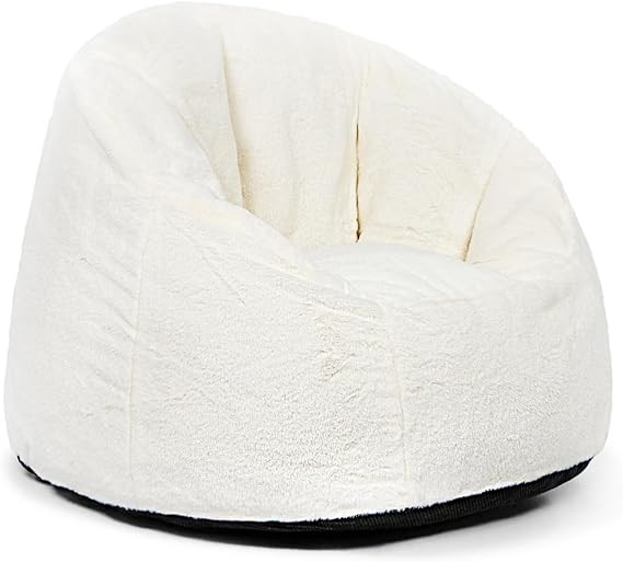 N&V Large Bean Bag Chair, Adult Size Bean Bag Sack, Foam Filling, Includes Removable and Machine Washable Cover, 37in, Soft Faux Fur (White)