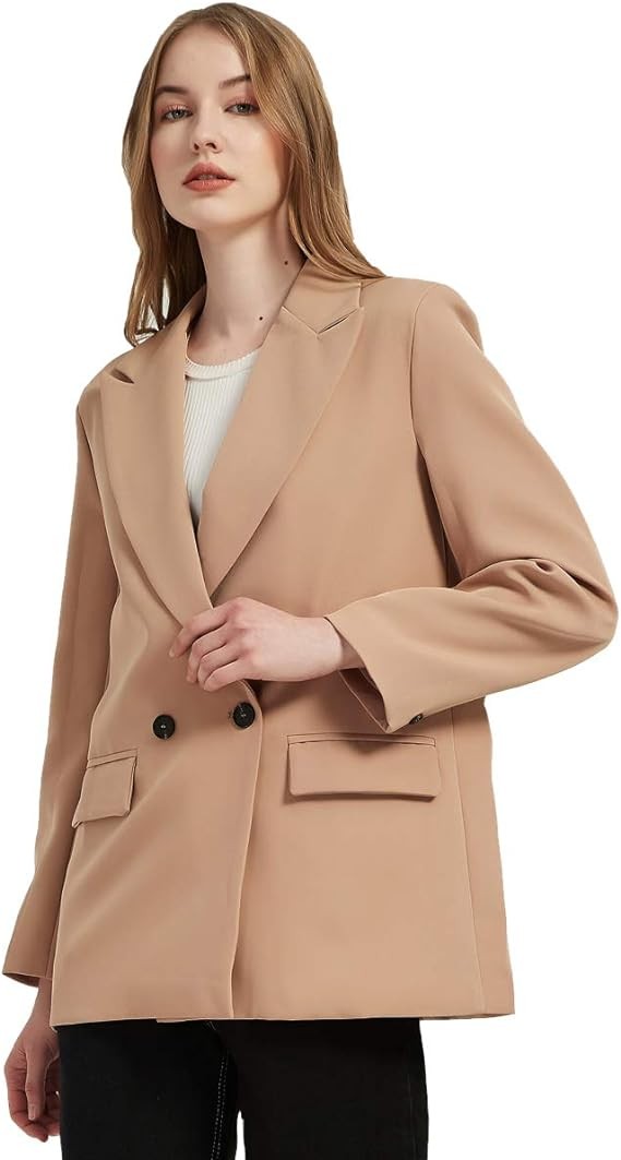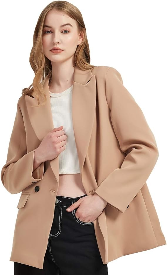 RZIV Women's Casual Long Sleeve Lapel Oversized Button Work Office Blazer Suit Jacket