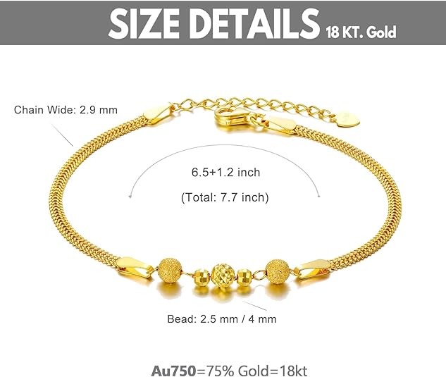 【Gift for Her】 The 18 carat gold bracelet packaged in a box is a great gift for wife, daugher, mother, or girlfriend.
