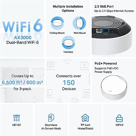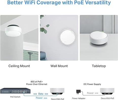 • No More Buffering or Dead Zones-With coverage up to 6,500 sq.ft and connections for up to 150 devices, the Deco X50-PoE provides seamless, high-performance WiFi 6, eliminating buffering and dead zones¹