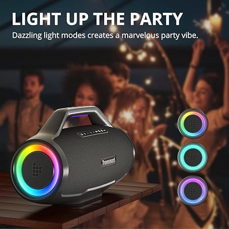 Tronsmart Bang Max Portable Bluetooth Speaker, 130W Powerful Loud Speaker with Deep Bass, Party Sync, IPX6 Waterproof, 24H Playtime, Customized EQ & Light Show,Portable Speaker with Handle for Outdoor
