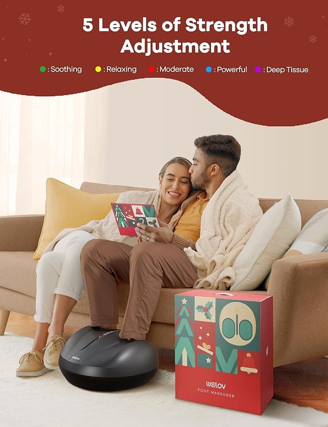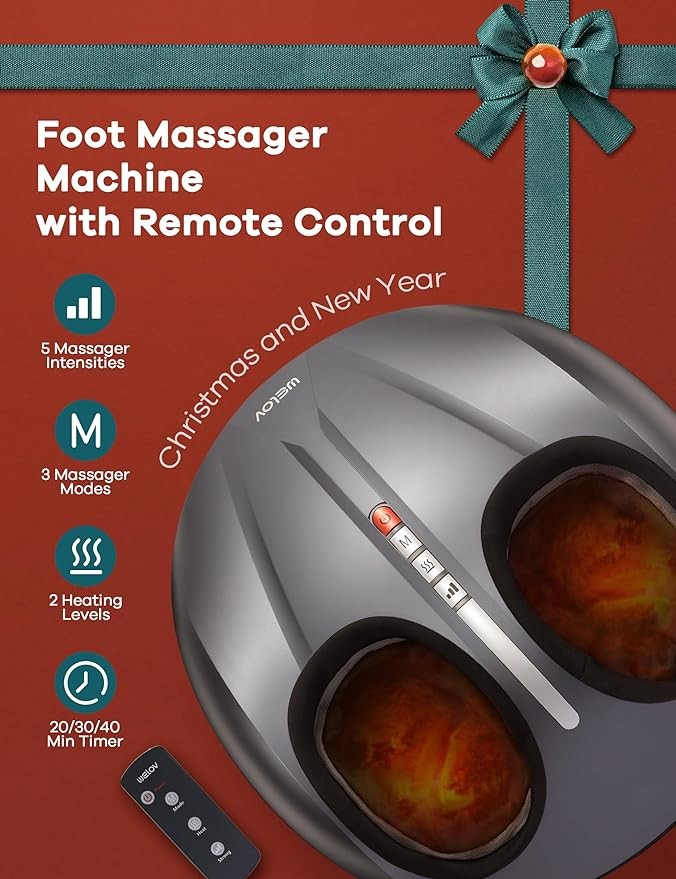 【Professional Foot Massager Machine】: Welov electric foot massager has ? ??????? ?????, ? ???????? ????????? ?????? and ? ??????? ??????. The ergonomic design complements the structure of the human foot and is thoroughly constructed to target the foot reflex zones and massage points which can effectively relieve foot from plantar fasciitis, neuropathy pain, foot stiffness, fatigued muscles, improve blood flow and promote better sleep.