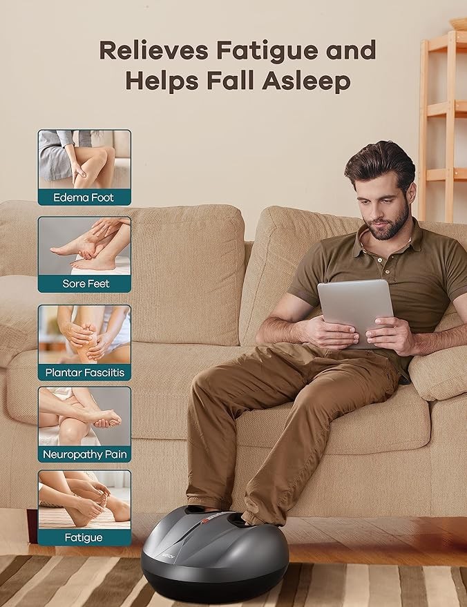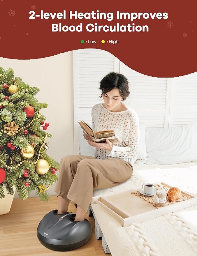 【Soothing Heating Function】: The foot massager with heat has an ?????????? ? ??????? ??????. The heated foot massager rapidly warms up in seconds and warms your cold feet, increases massage comfort, further relieves muscle tension and foot soreness, enhances blood circulation and promotes better sleep. The heating function can work independently and is especially friendly for the elderly with edema of legs and feet and decreased mobility, especially during cold weather.