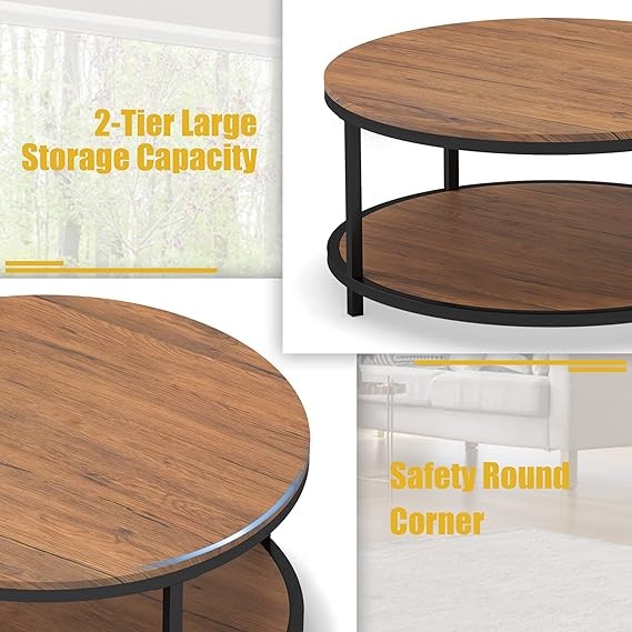 Large Storage Space---Our circle coffee table has a spacious surface for everyday use and a low-level open shelf that can hold your different types of items, such as books, toys, snacks. its the perfect space-saver solution for a small apartment or large home. Ample space makes your home and room tidy and clean.