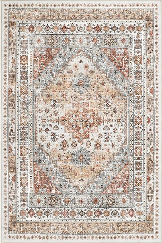 zesthome 9x12 area rug, stain resistant washable rug, ultra-thin rug for living room, bedroom, non-slip backing home decor large area rug (orange, 9'x12')